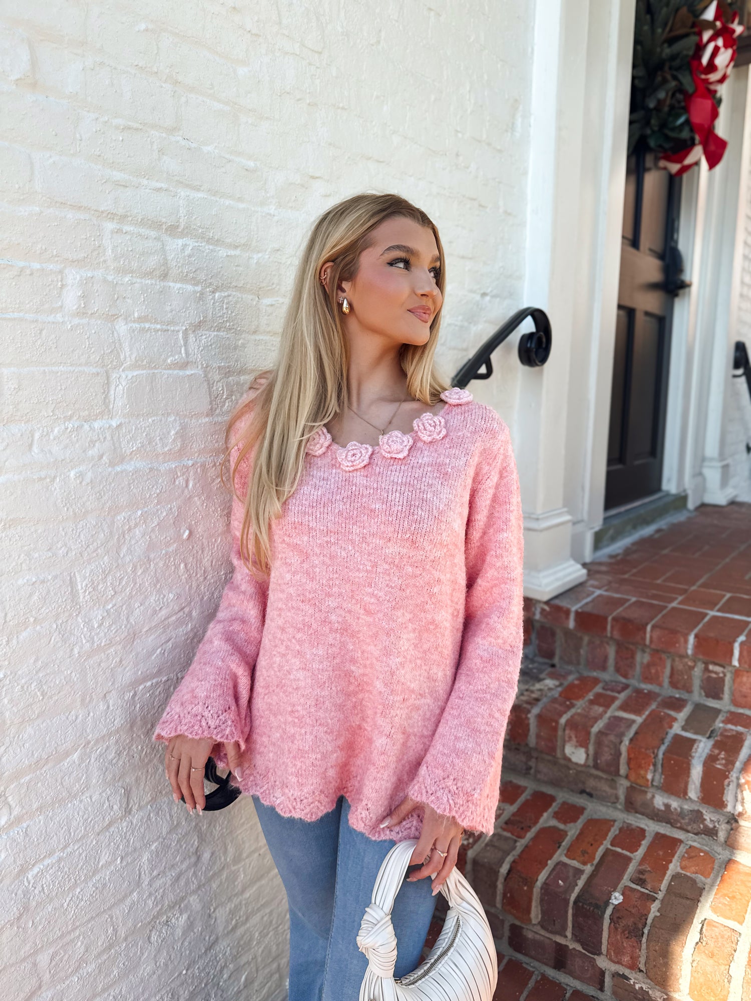 Soft Rosé Rosette Sweater