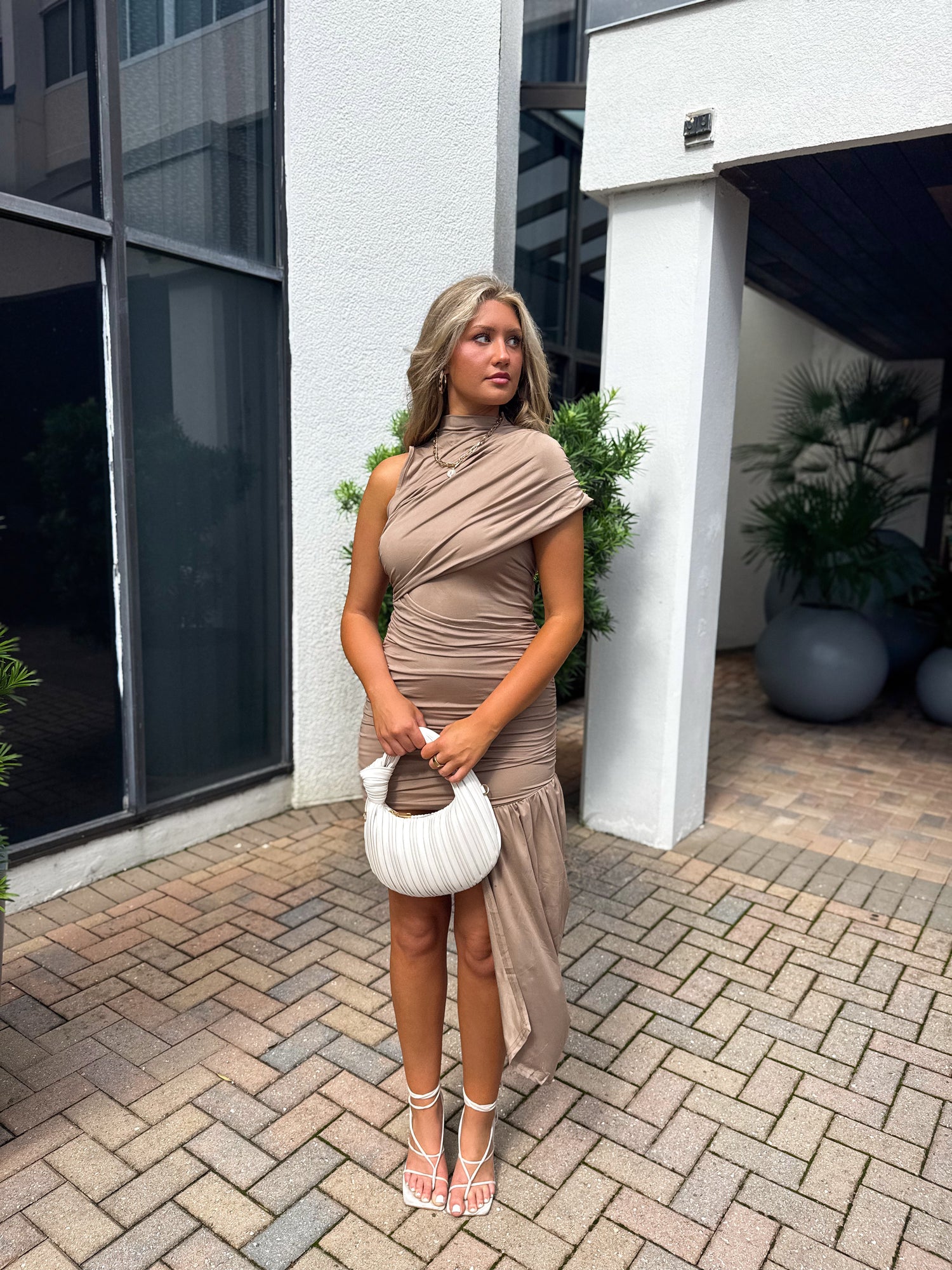 Taupe Twist Mini Dress